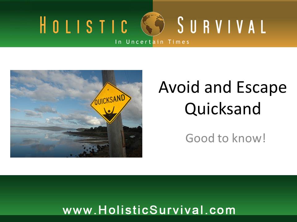 Quicksand is a hidden danger in the woods, ready to suck you in and hold you tight. While drowning in quicksand is not as common as Hollywood makes it out to be, it still creates dangers such as dehydration, sunstroke, hypothermia, and drowning as the tide returns. It can also leave you unable to fend off hungry predators. These are enough reasons to learn how to avoid and escape from quicksand.