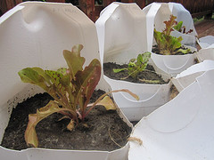 – Cut off the bottom couple inches of a gallon milk jug to start your seeds. These little seed flats save space and can be easily rearranged to make the most of lighting conditions.